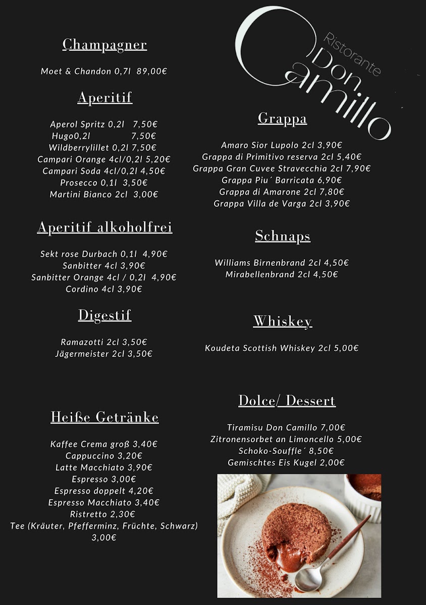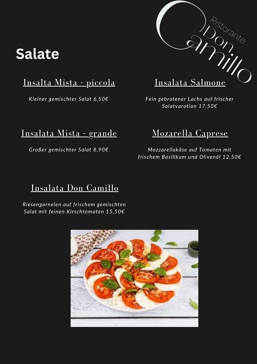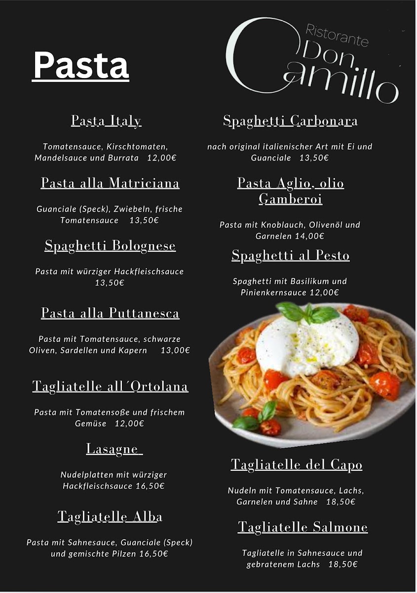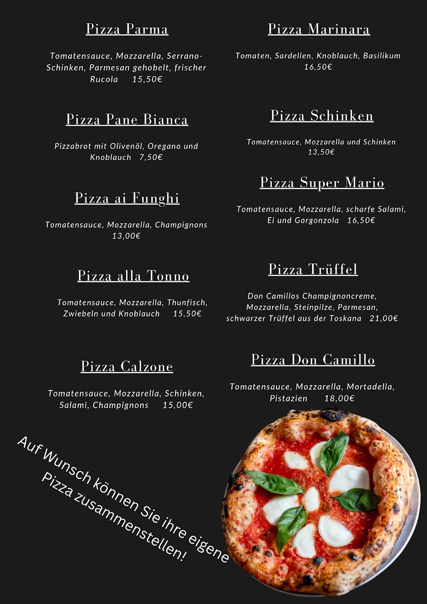 If you're in Oberkirch and craving authentic Italian flavors, the Ristorante-Pizzeria Don Camillo Oberkirch Menu is the place to be. Located at Am Marktpl. 8, this charming spot brings the heart of Italy right to the center of the town. The menu offers an irresistible mix of traditional dishes, from wood-fired pizzas to homemade pastas that taste like they were crafted straight from Nonna’s kitchen. Whether you're in the mood for a classic Margherita pizza, a rich plate of lasagna, or a fresh seafood dish, there’s something for every taste. Each bite is a true celebration of Italian cuisine, featuring only the freshest ingredients. And don't forget the carefully selected wines, perfectly paired with each dish to elevate your dining experience. The cozy yet vibrant atmosphere makes it ideal for a casual meal with friends or a special family gathering. You'll find that each dish is made with love, giving you a taste of Italy without having to leave the town.